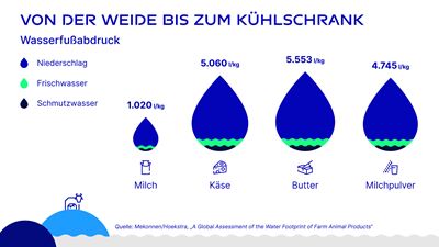 In Deutschland haben die 165 milchverarbeitenden Betriebe einen jährlichen Wasserfußabdruck von mehr als 32 Billionen Litern.